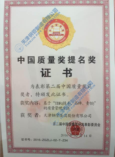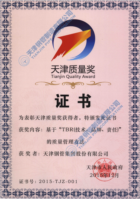 公司荣获天津质量奖。