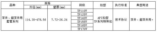 深井/超深井系列专用套管已经在国内各大油田得到广泛使用。产品曾应用于国内多口 8000~10000 米超深井的钻采。目前国内正在开发的多口万米特深井都使用了 TP 系列超深井套管产品。