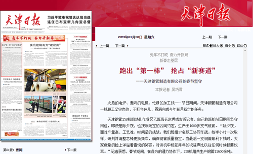 而在营销一线,天津钢管的销售人员也没有因为假期而停歇。“商战中时间不等人,机遇转瞬即逝,要跑出新春‘第一棒’,抢占‘新赛道’,必须时刻急客户所急、想客户所想。”天津钢管销售总公司业务员李少波对记者说。